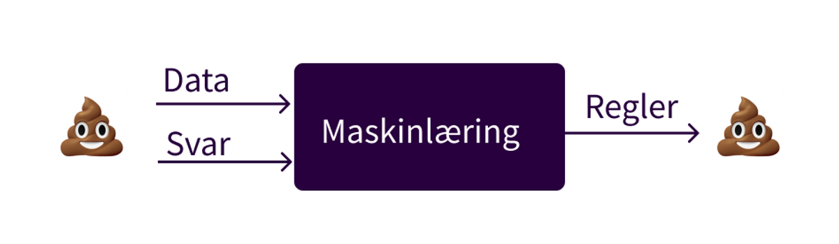 Maskinlæringsmodeller er basert på statistikk og sannsynlighet. Den har blitt veldig flink, men den er ikke smart. I tillegg er kvaliteten på maskinlæringsmodellen helt avhengig av dataene som blir brukt for å trene den. Her gjelder «Shit in - shit out». Bruker vi riktige og gode data når vi trener modellen?