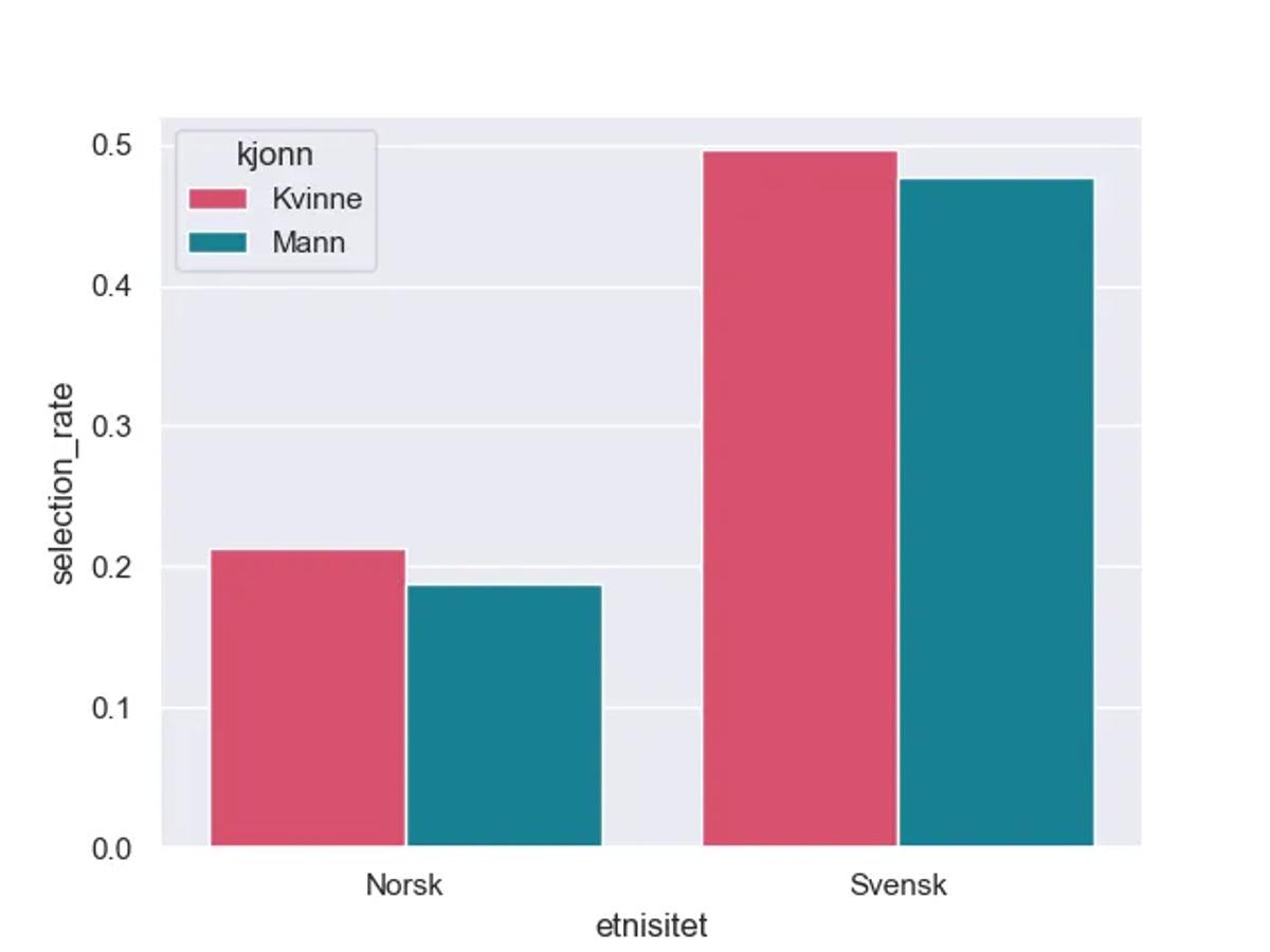 - Demografisk paritet: Seleksjonsraten skal være lik på tvers av alle gruppene