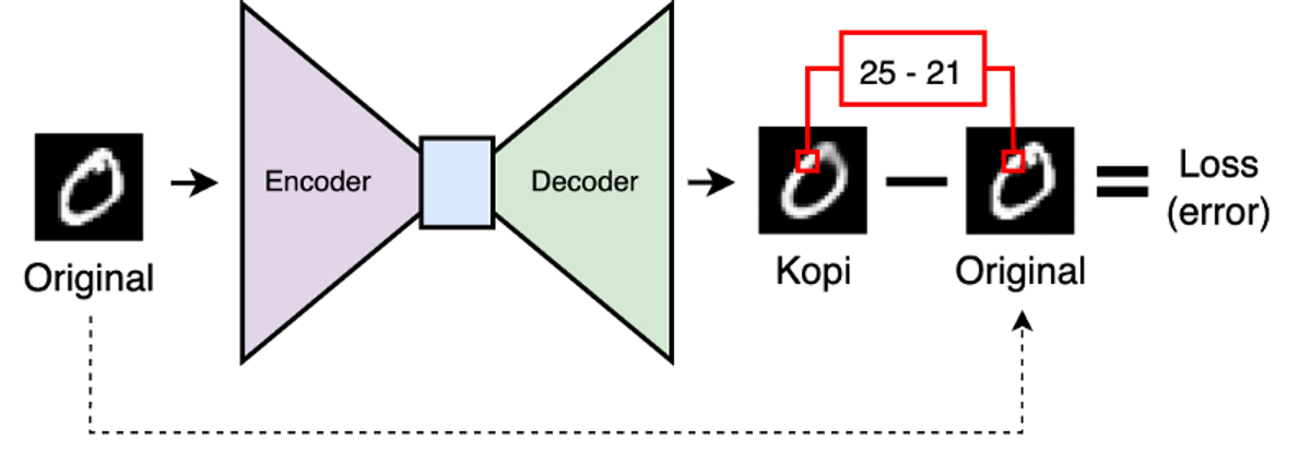 Figur 3: Forenklet illustrasjon av loss kalkulasjon for en autoenkoder