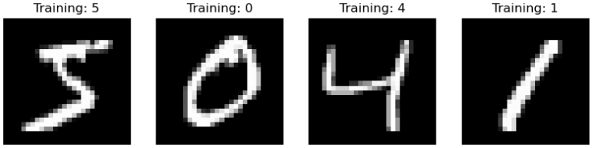 Først bruker vi sklearn sin fetch_openml funksjon for å laste MNIST datasettet inn i minnet. Deretter henter vi ut bildene og konverterer disse til 28x28 format, for så å hente ut labels for alle bildene (NB! Labels brukes kun til visualisering og ikke i selve treningsprosessen)