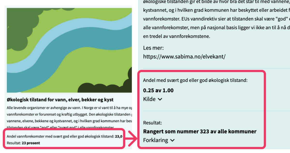 Noen av kriteriene er kategoriske, for eksempel om kommunen forsøker å stoppe spredning av fremmede arter. Andre er numeriske verdier — for eksempel hvor mye penger kommunen bruker på naturkompetanse, og de statistiske egenskapene for disse fordelingene spriker enormt.