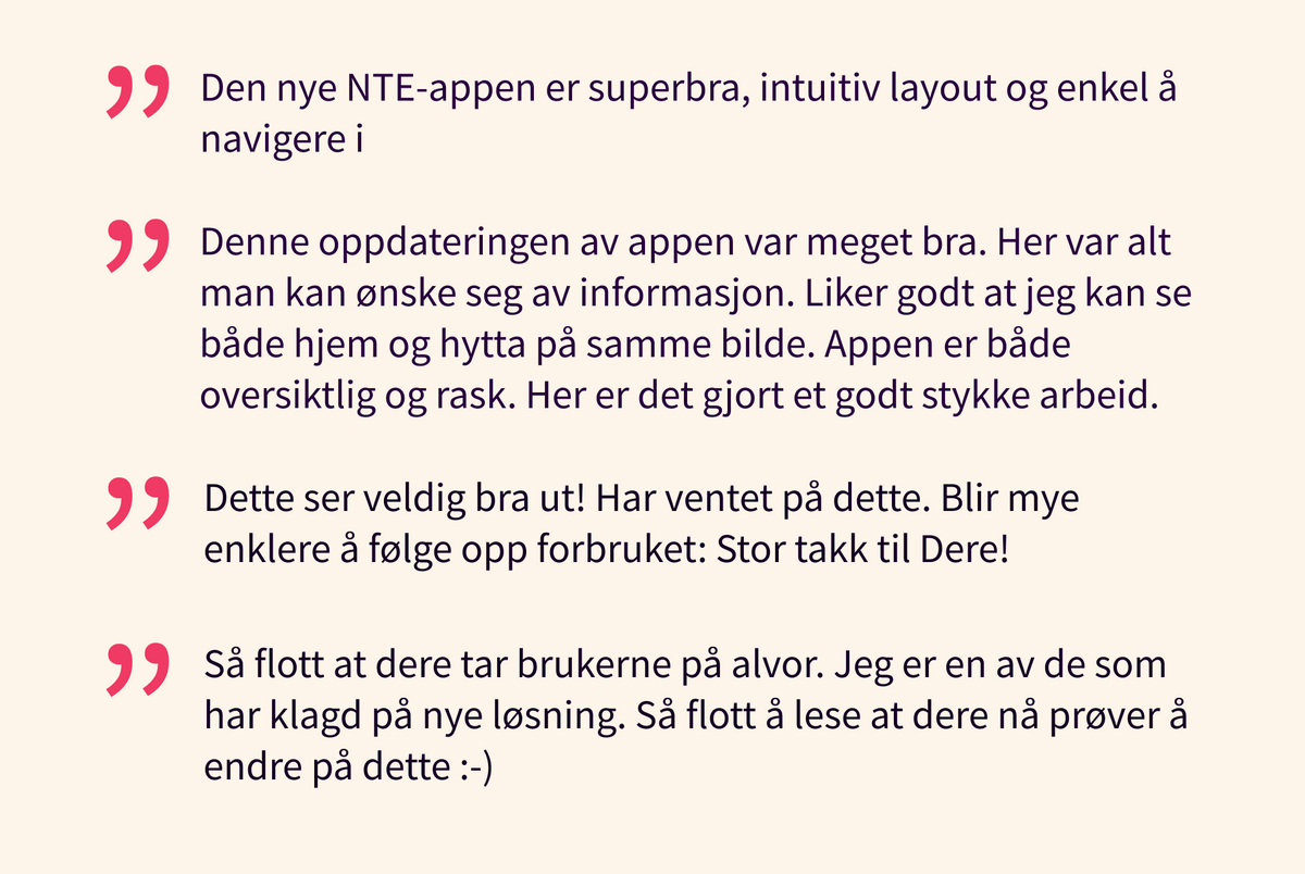 Opprinnelig var NTE sin kundeapp en prototyp som var utviklet for å se om bedre oversikt over strømforbruket ville innebære at NTE-kundene brukte mindre strøm. Appen hadde vokst i omfang og brukergruppe og var en av de best likte (rating 4,3 på Google Play), ca 50 000 nedlastinger og over 1000 anmeldelser. Analyser fra appen viste at antallet aktive brukere lå rundt 20 000 og at de brukte appen ofte mer enn en gang i uka.